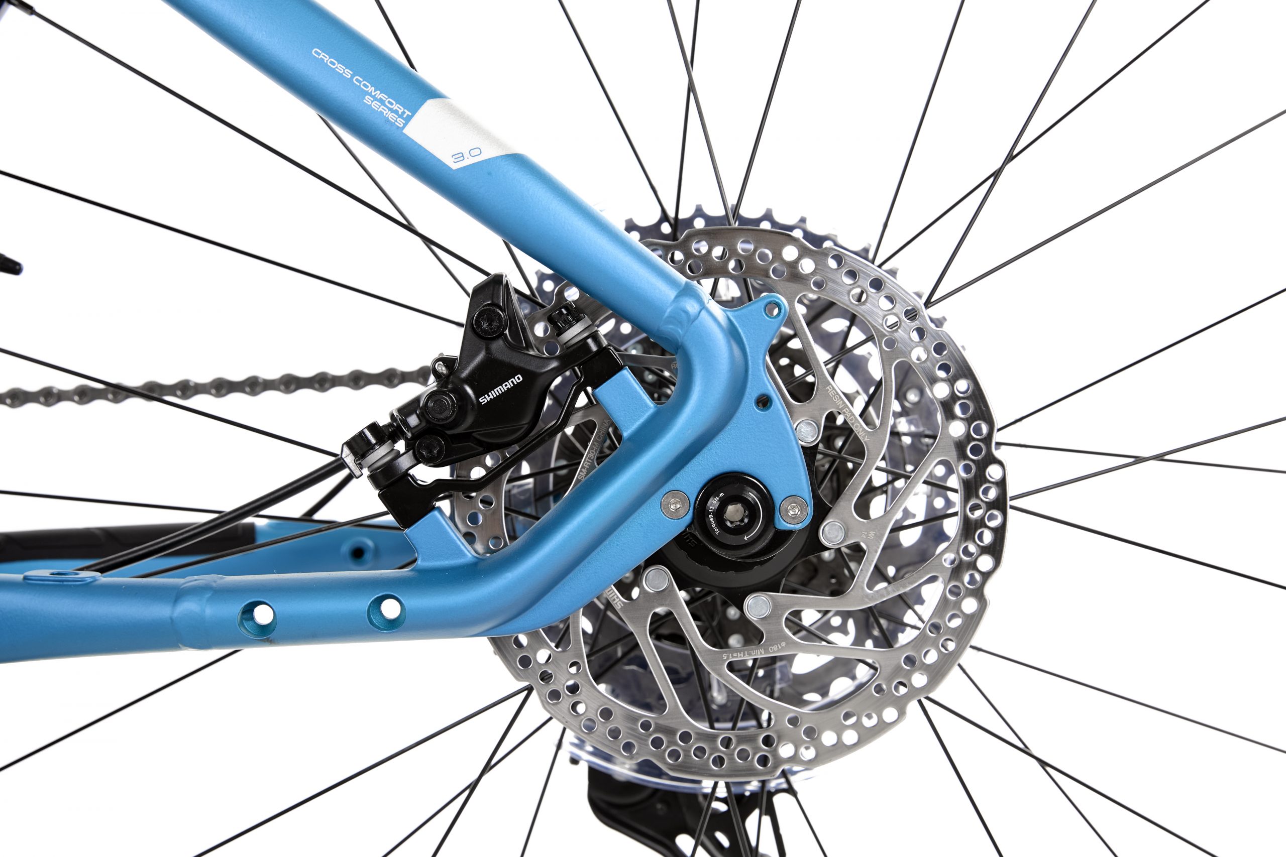 Completa la dotazione una solida combinazione di freni a disco idraulici Shimano MT4100 e pneumatici Schwalbe G-One Bite 28″×2.00″, per controllo e affidabilità in ogni condizione.