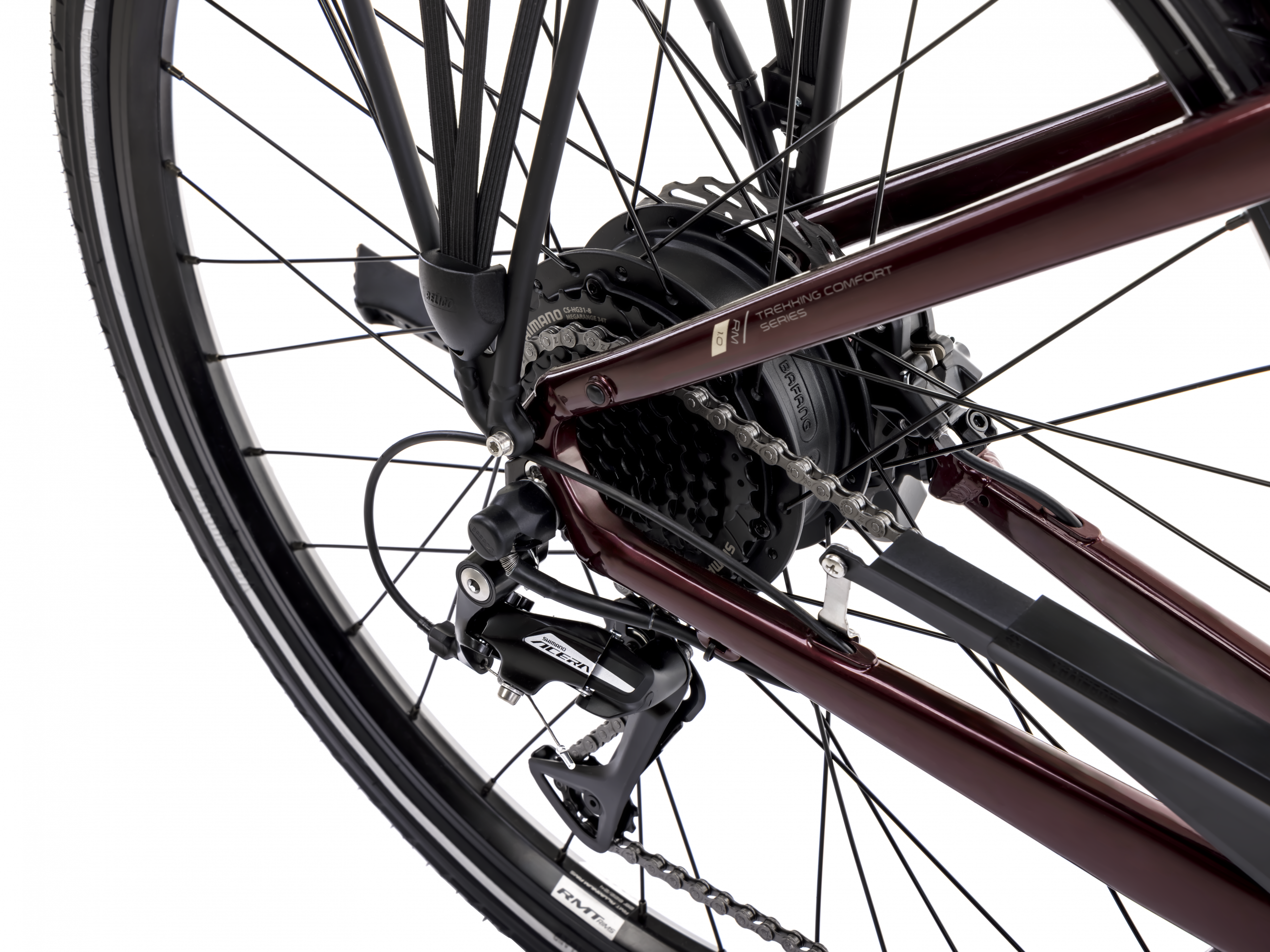 Completamente equipaggiata con parafanghi, portapacchi, luci e cavalletto, questa e-bike è pronta a tutto: città, trekking, esplorazioni.