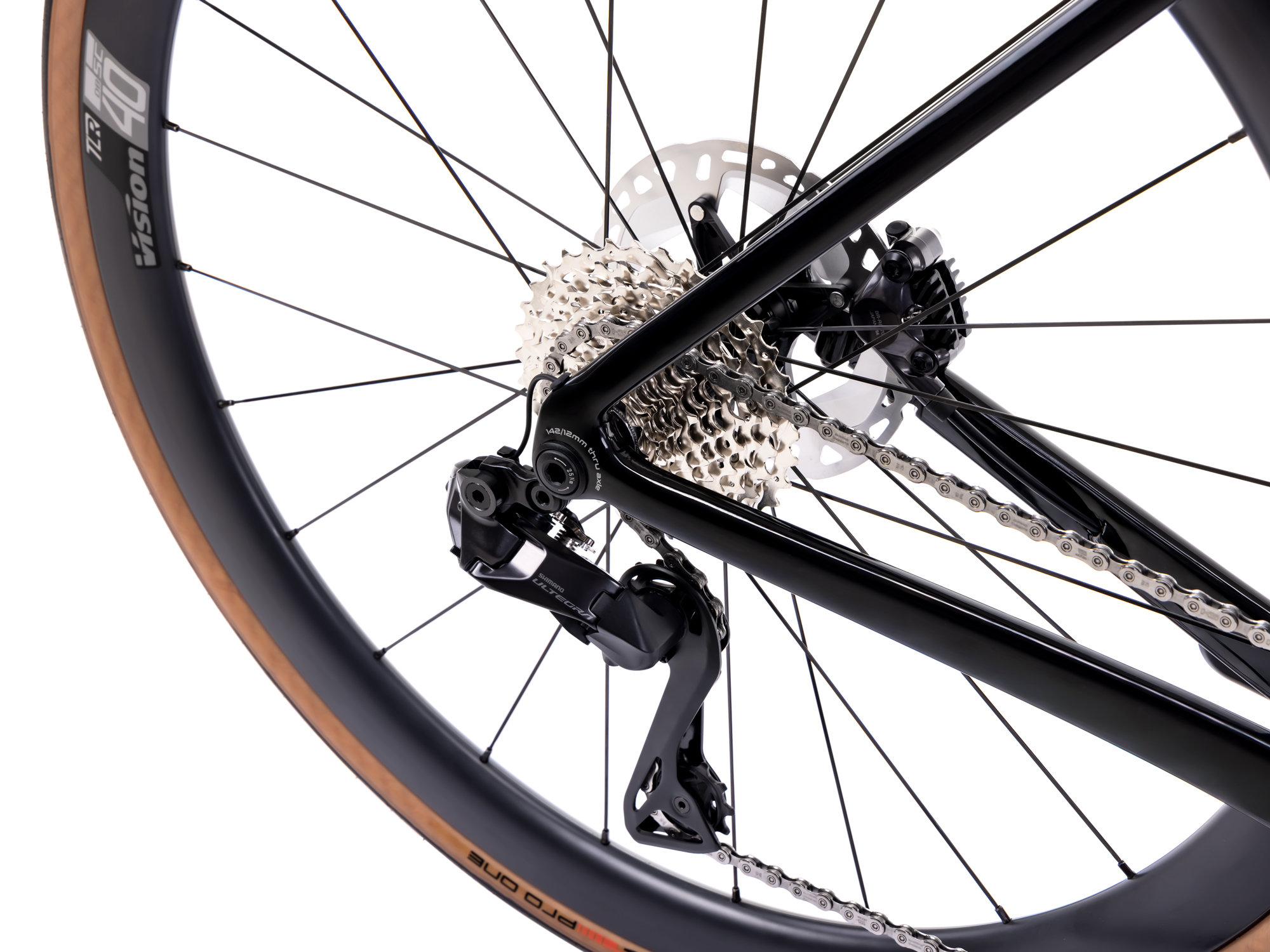 I freni a disco idraulici Shimano ULTEGRA assicurano potenza di frenata costante e controllo totale, anche in condizioni difficili. La bici supporta pneumatici fino a 34 mm, combinando velocità su asfalto e versatilità anche su superfici meno regolari.