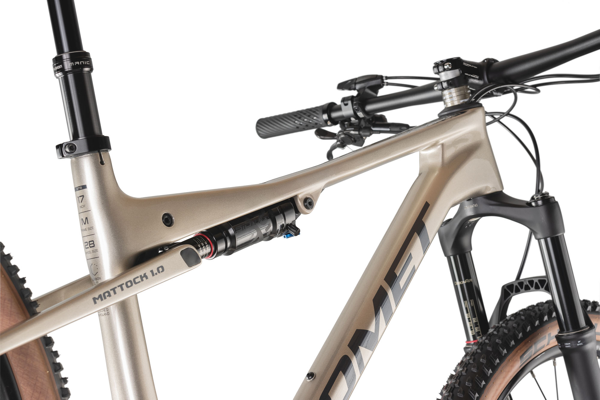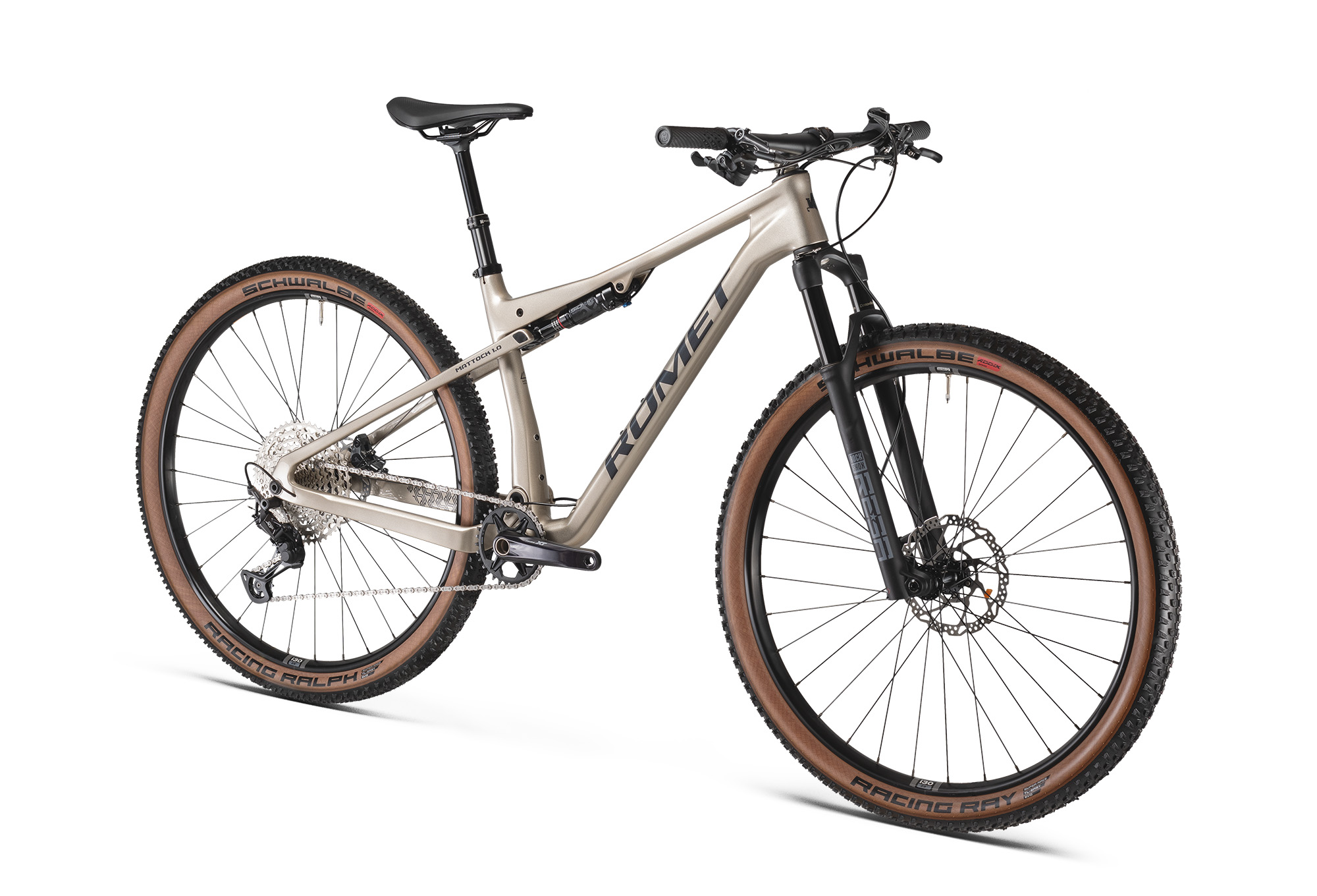 La Romet Mattock 1.0 Carbon è una mountain bike full suspension progettata per i rider che cercano leggerezza, prestazioni e controllo sui trail più impegnativi.